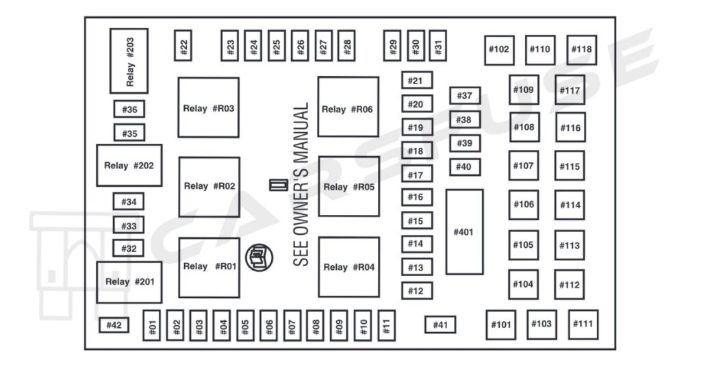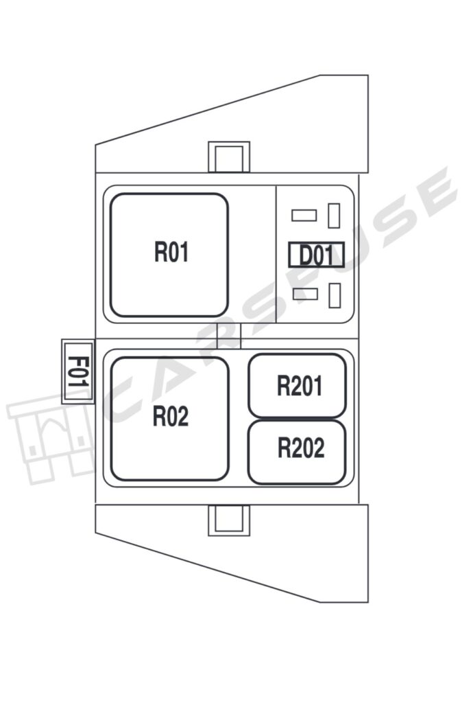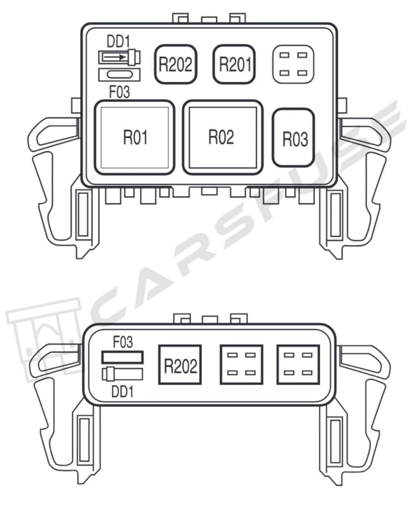 | 10 | 20A* | Trailer tow back-up lamps relay(PCB1), Trailer tow park lamp relay(R201) |