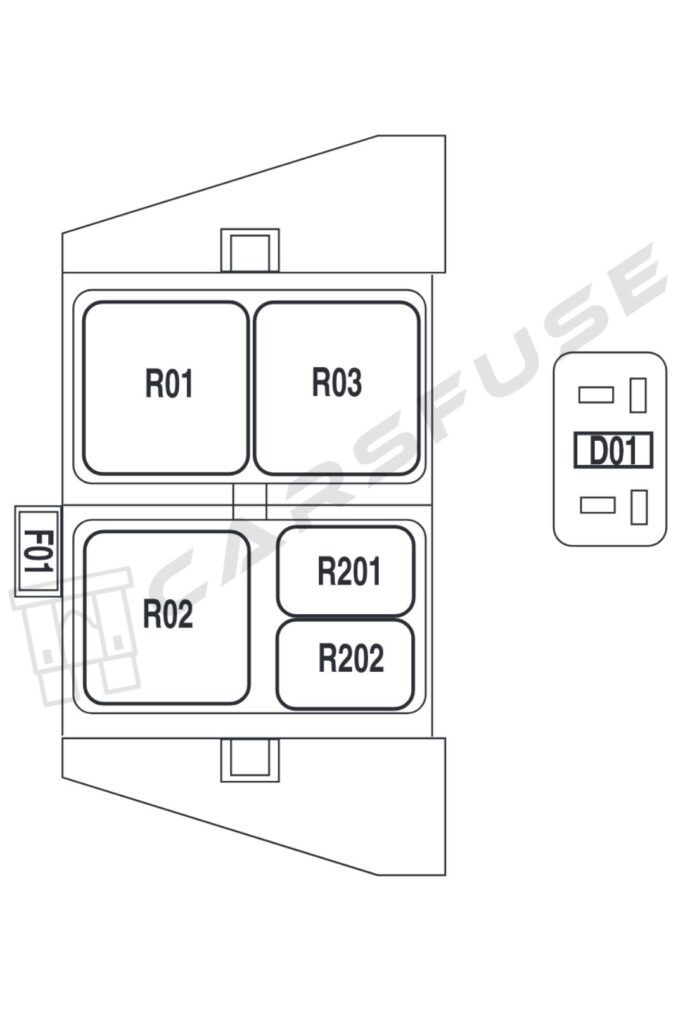 | 17 | 15A* | Fog lamp relay (R202) |