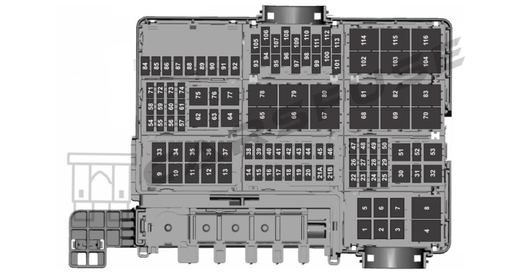 | 100 | 25A2 | Diesel exhaust fluid (DEF) heater relay (Diesel). |